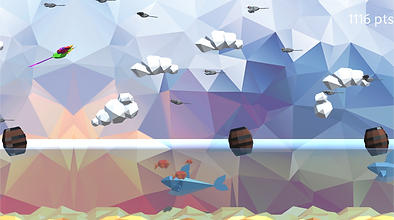 AquaBird est un Endless Runner dans lequel le joueur contrôle un oiseau devant slalomer entre les obstacles se dressant devant lui. l'espace de jeu est décomposée en 2 grandes zones : une zone aérienne avec des déplacements rapides et une zone aquatique où tous les mouvements sont ralentis.